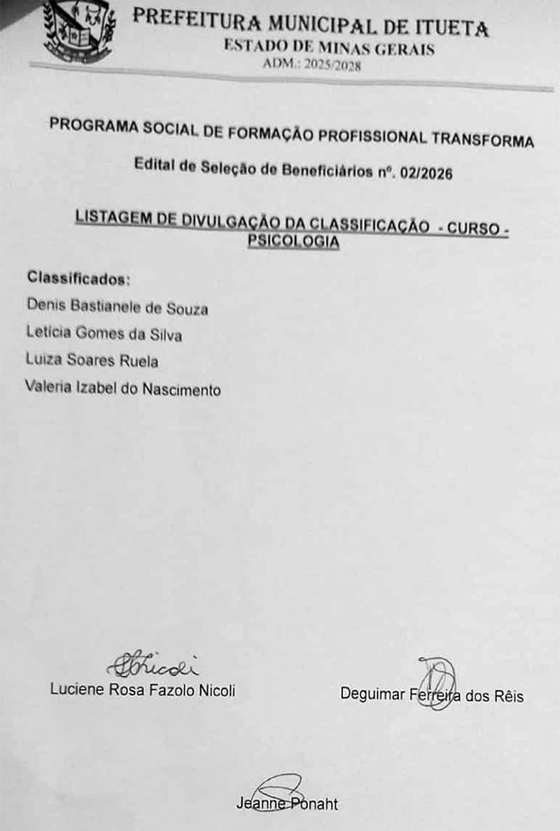 Classificação - Programa Social de Formação Profissional Transforma - Edital de Seleção de Beneficiários nº 02/2026