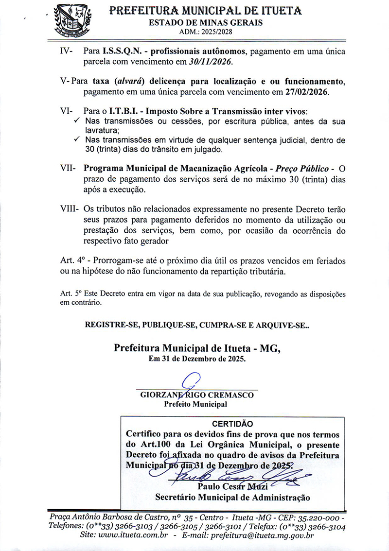 DECRETO Nº: 059, de 31 de Dezembro de 2025.